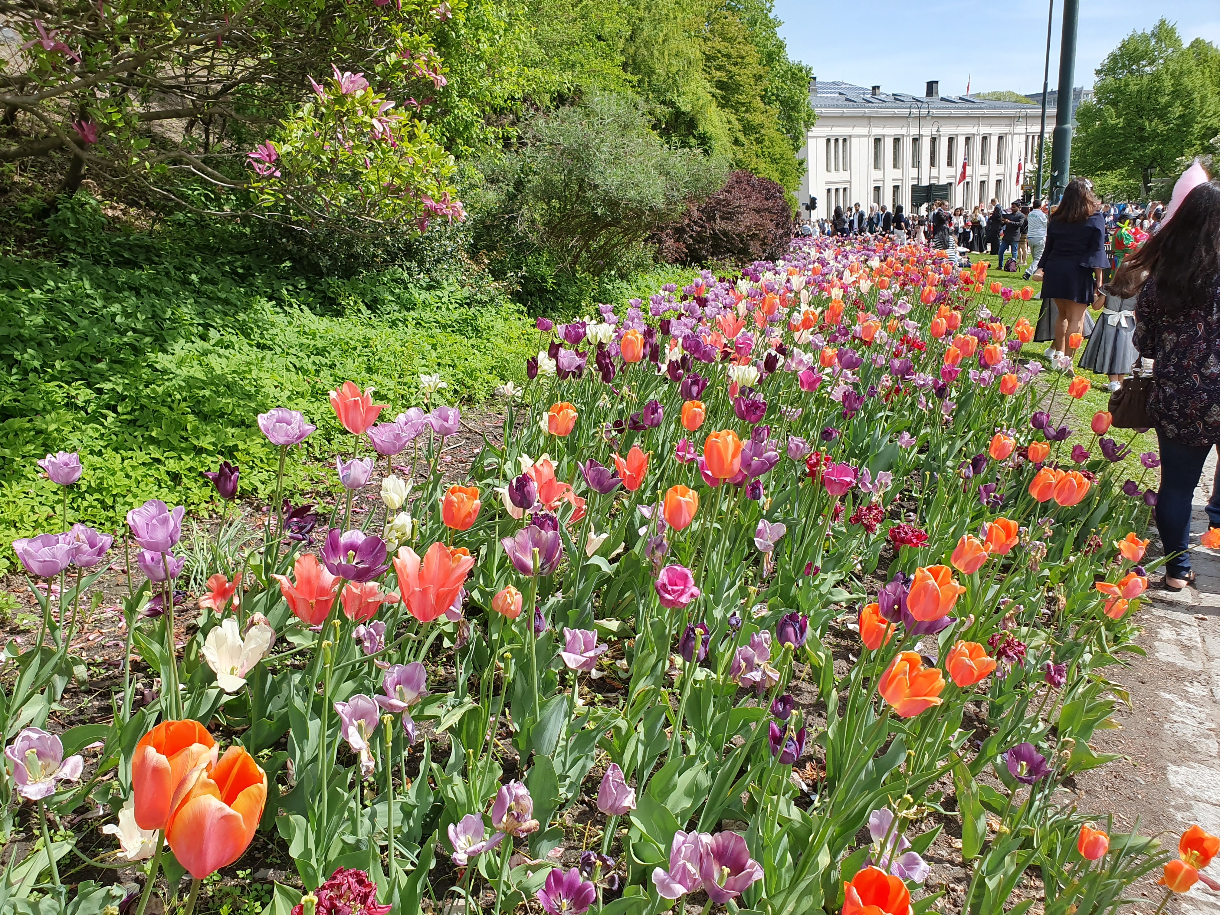 Fantastisk tulipanbed rett nedenfor national. Det finnes mange fantastiske blomsterdekorasjoner rundt om i Oslo.