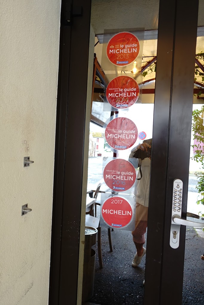 Så ble det noen byer til og noen kirker til og gjett hva vi fant til slutt! Endelig en pytteliten restaurant med Micheliner på utsiden av døra. Nå har vi reist gjennom hele Frankrike 2 ganger og ikke spist noe annet enn elendig mat, uansett hvor flinke vi har vært til å velge lokale kjente restauranter. Nå var det håp!